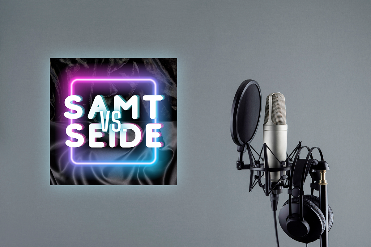 Logo (R)ECHT INTERESSANT-Podcast auf Tabletbildschirm (Steffi Beyrich)